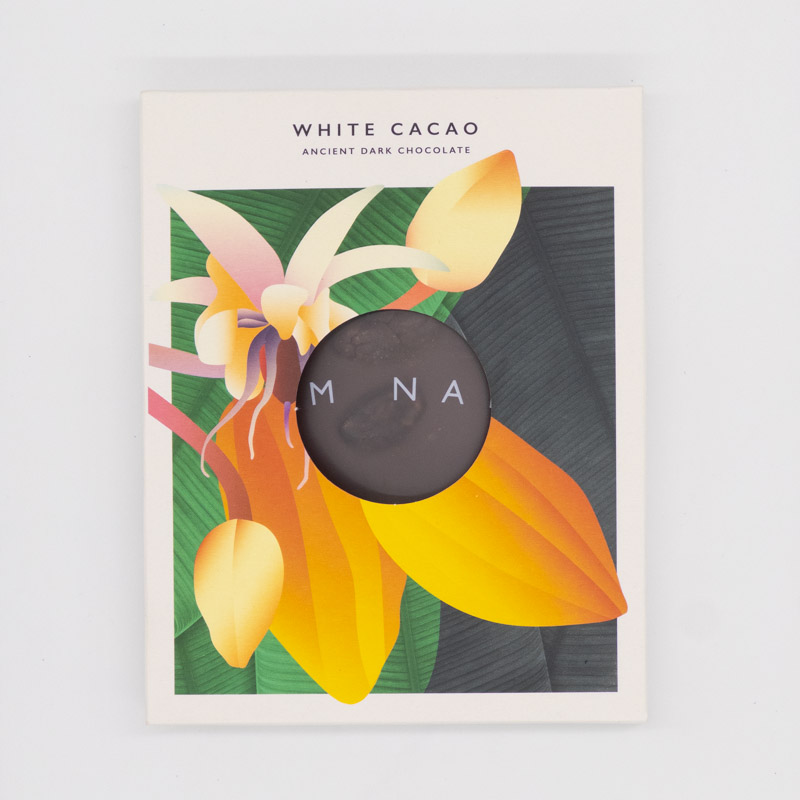 Podczas ośmiu lat mojej pracy w produkcji czekolady nauczyłem się kilku rzeczy. Nie tylko zbudowałem piękne i dalekosiężne relacje z małymi plantatorami kakao, ale też wypracowałem wizję swojej misji w świecie czekolady. Moją największą pasją jest poszukiwanie, eksperymentowanie i testowanie – dlatego przedstawiam to wyważone, a jednocześnie wyjątkowe dzieło: czekoladę ze starożytnego, ultra‑rzadkiego meksykańskiego białego kakao z dodatkiem nibsów. Smak, tekstura i kolor tej czekolady nie pozostawiają wątpliwości co do autentyczności receptury. To czekolada w najczystszej postaci.