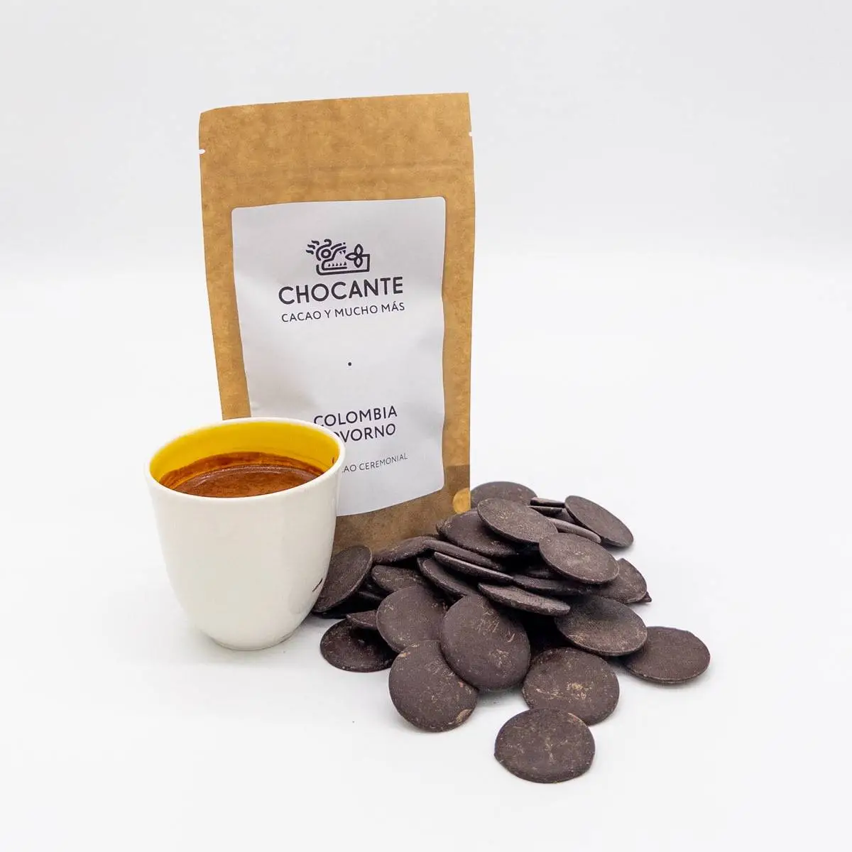 Церемоніальне какао (повножирна какао-паста, какао-терте) з колумбійського Тумако та інших країн. Трохи сухуватий какао з молочними нотками, створений із суміші какао-бобів Кріолло та Трінітаріо.